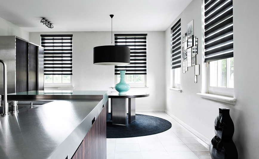 • Excelente sistema de manejar láminas de aluminio que abren y cierran rápidamente para controlar el paso de la luz y la visibilidad. Las venecianas de aluminio dan al interior un toque moderno e industrial. Los colores metálicos de esta amplia colección están inspirados en colores de pintura para automóviles. El ancho de la lámina varia en 16 - 25 - 50mm para comodidad y espacio. La colección también está disponible en aluminio perforado. Los agujeritos sutiles filtran la luz de forma agradable y dan un toque alegre.